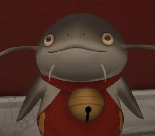 "Work is important, yes yes. Lazy flippers will not please the Big One." - GyoheiGyohei works tirelessly with their partner Gyomo to keep the Company Manse clean and tidy! The sound of their squeaking feet let everyone know, they're coming to clean and if you don't move, you'll get swept away!